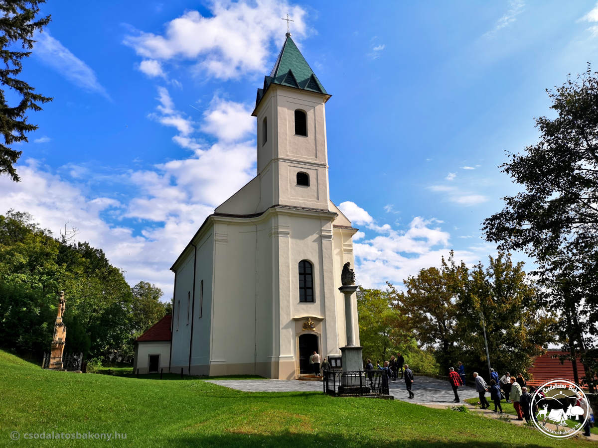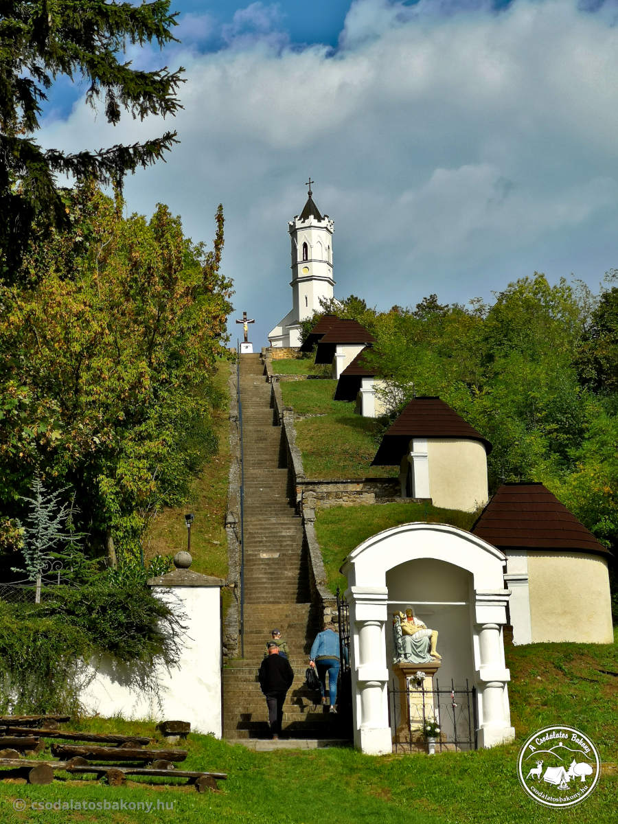 Az erdőből kiérve aztán megpillantottam Magyarpolány házait. A falut 1171-ben említik először az írásos emlékek, mint a bakonybéli bencés apátság birtokát. A lakosság 16. század második felében a közeledő törökök elől elmenekül, a település elnéptelenedik. Csak a 17. században tér vissza az élet a faluba, 1696-ban a vidék már a zirci apátság birtokát képezi. Érdekesség, hogy ezt követően két falu alakul ki itt, Magyar- és Németpolány, amelyek végül 1899-ben egyesültek. A község leghíresebb látnivalója a Kálvária. 173 lépcsőfok vezet a dombtetőn álló Szent Szűz kápolnához, útközben pedig öt pihenőhely található, ahol a ˝fájdalmas Rózsafüzér öt titka˝ csodálható meg.