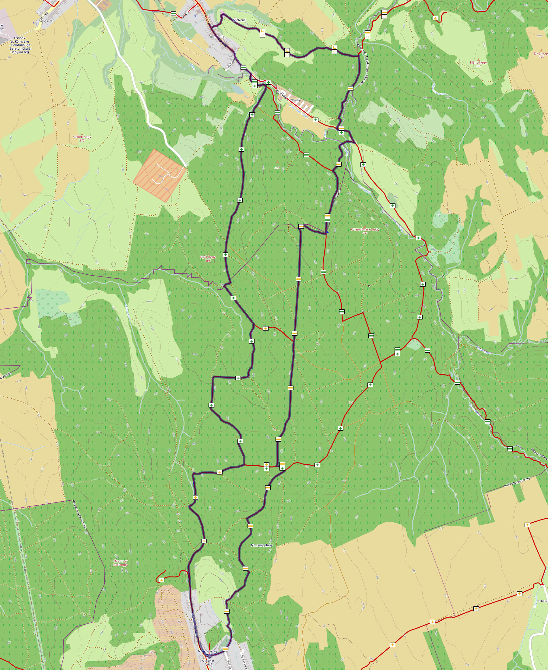 Csak másnap derült ki számomra, hogy ez a kör nagyjából (vagy talán pontosan) egyezik a termeszetjaro.hu által ˝Bakonyaljai kilátások és források útja˝ néven emlegetett túraútvonallal.