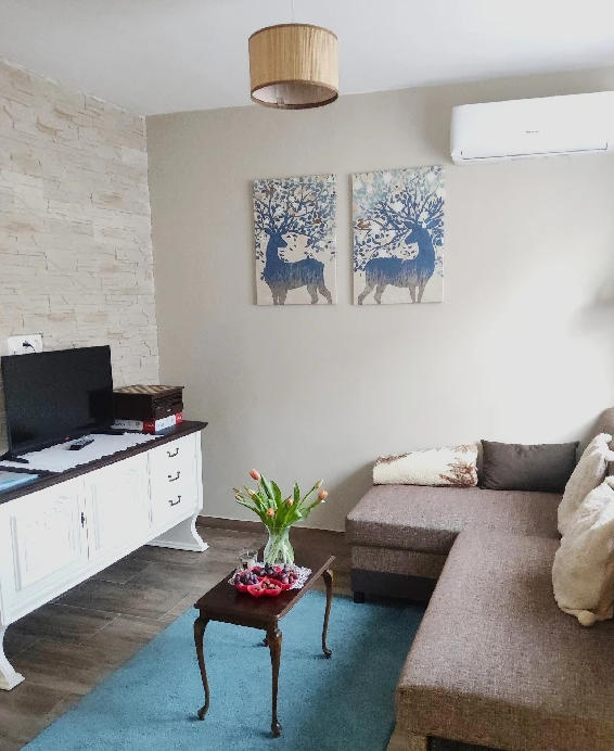 Vintage stílusban berendezett apartmanban 2 hálószoba (2 db 2+1 fő (nem pótágyazható), amerikai konyhás nappali (2 főre nyitható kanapéval) és egy egyszemélyes, fényterápiás pezsgőfürdőkáddal felszerelt fürdőszoba található.
