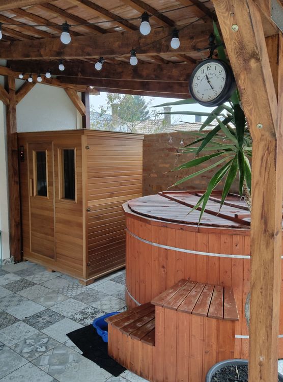 A kertben a nyári szezonban panorámás fűtött (időjárás függvényében 25-27 fok) medence bárpulttal, kerti zuhany és wc, napozóterasz, játszótér, grillezési- bográcsozási lehetőség, a hátsó fedett teraszon pedig 8 személyes, egész évben elektromosan fűtött parajdi sós dézsafürdő (időjárás függvényében 35-38 fok) és infraszauna áll rendelkezésre.